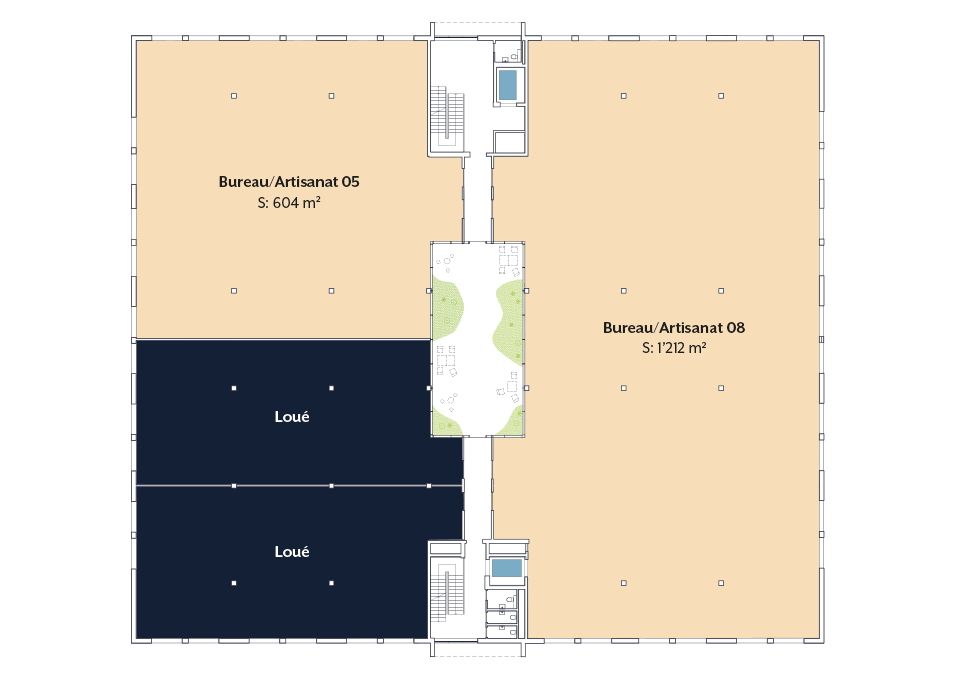 8 000 m² de locaux commerciaux neufs, répartis sur trois niveaux, flexibles et modulables en fonction de votre type d’activité: industrie, artisanat, administratif et services.